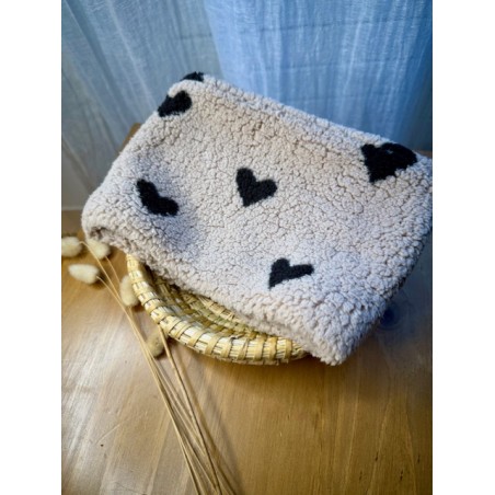 Snood en bouclette sherpa beige à coeurs made in France Tête de Lylotte