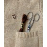 Ensemble mixte en tricot 100% laine. Le pull s'ouvre au dos par un double boutonnage avec quatre boutons de bois. Pantalon avec large bande élastiquée pour ne pas comprimer le ventre de bébé.