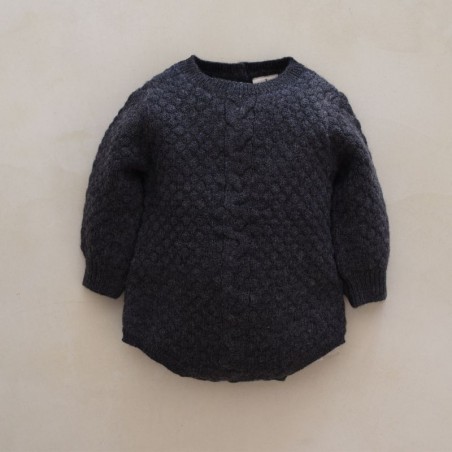 Barboteuse manches longues en maille texturée et torsadée. 100% laine certifiée RWS.