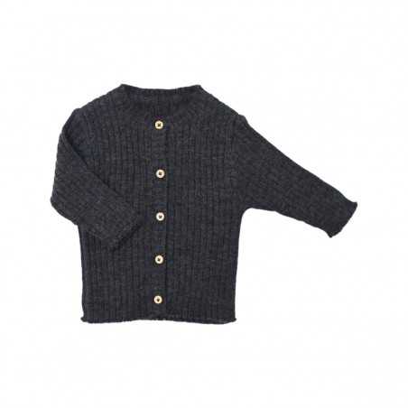 Cardigan à côtes gris chiné en 100% laine RWS.