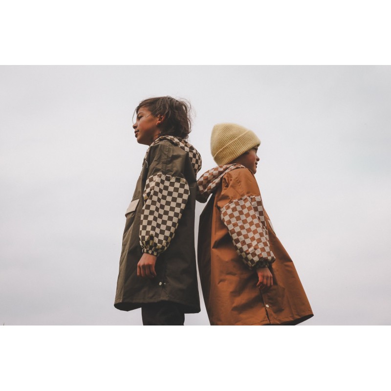 Poncho pluie long - Damier kaki - Poule Party
